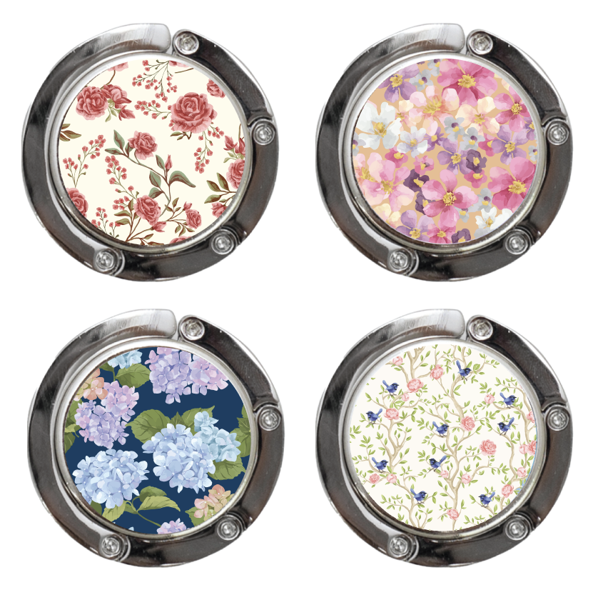 Gift Boxed Pocket Hand Bag Hanger Beautifully decorated with 4x unique floral designs in the range