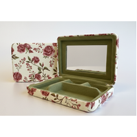 Quality PU Travel Jewel Box/Safe Keeper Box Perfect for Holding all your Bits and Pieces, Jewellery, coins, headphones etc. Soft touch velvet lining with clam shell lid and vanity mirror. Australian designed. Size 10 X 7 X 2cm
